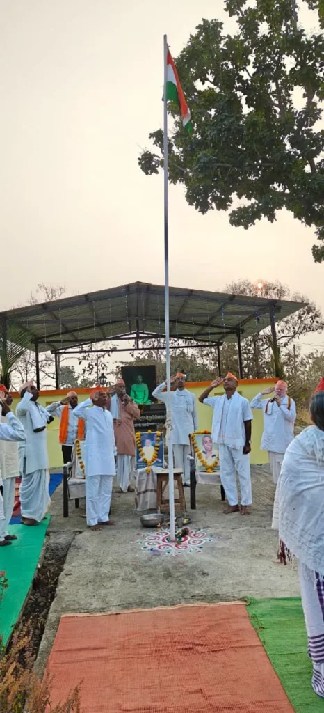 दिनांक 26 जानेवारी 2026 रोजी अध्यात्म गुरुकुल, जामदरी टेकडी येथे देशाचा राष्ट्रीय सण प्रजासत्ताक दिन मोठ्या उत्साहात साजरा करण्यात आला. सकाळी 7.30 वाजता ध्वजारोहणाचा कार्यक्रम आदरणीय श्री. सुबोधदादा (संचालक व मार्गदर्शक, भू-वैकुंठ अड्याळ/टेकडी) यांच्या हस्ते पार पडला.